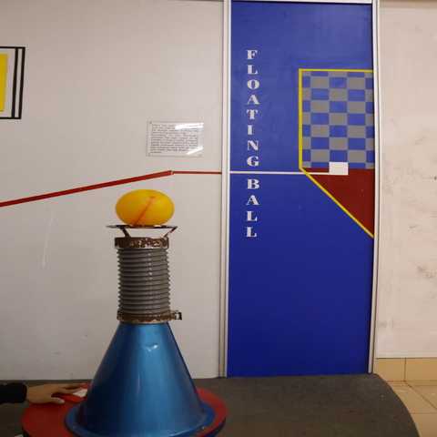 Bernoulli's principle states that as the speed of a fluid (like air) increases, its pressure decreases. In this case, when you press the switch, it triggers a high-speed air jet. As this air rushes out, it creates a low-pressure area along its path. Now, here's where the magic kicks in the surrounding air, which is at a higher pressure, rushes in from all sides to fill this low-pressure area. The collective force of the surrounding air pushing in from every direction effectively cradles and supports the ball, causing it to float in its position. It's a perfect illustration of how the physics of fluid dynamics can create seemingly gravity-defying effects. So, the next time you see that ball floating, remember, it's not magic; it's science – Bernoulli's principle at work!"